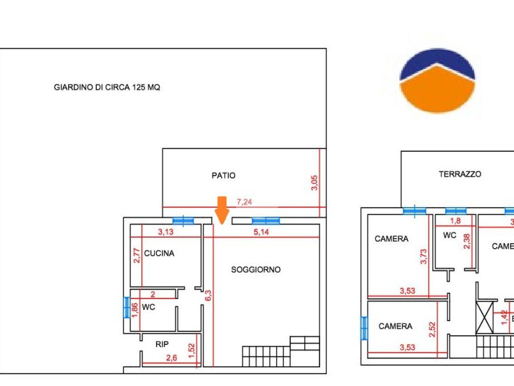 Varcando la soglia d’ingresso, si accede a un ampio e luminoso soggiorno, seguito da una cucina abitabile con accesso diretto al patio, un bagno finestrato con doccia e un pratico ripostiglio.